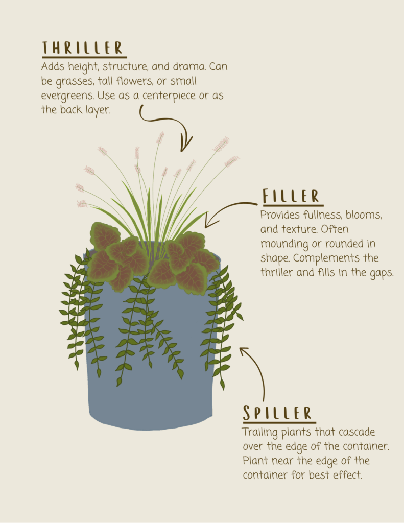 If you’re not sure how to design your pot, this simple formula is a tried-and-true method for creating a balanced, eye-catching container.